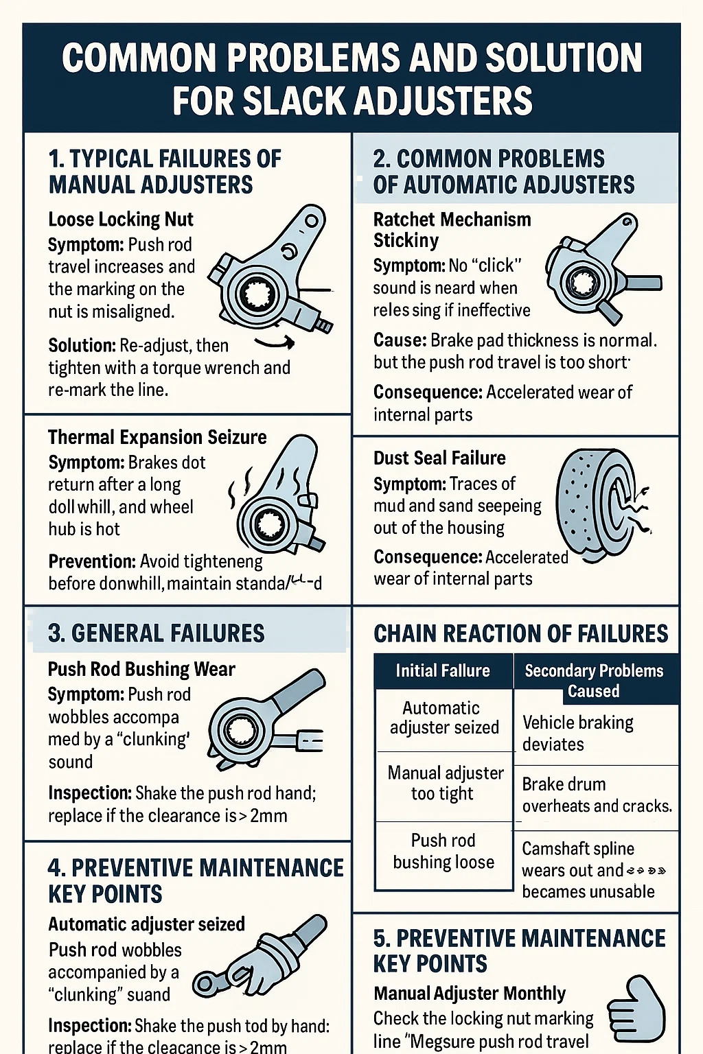 Gejala: Ketebalan pad kendur adalah normal, tetapi perjalanan rod push terlalu pendek (slack seret).