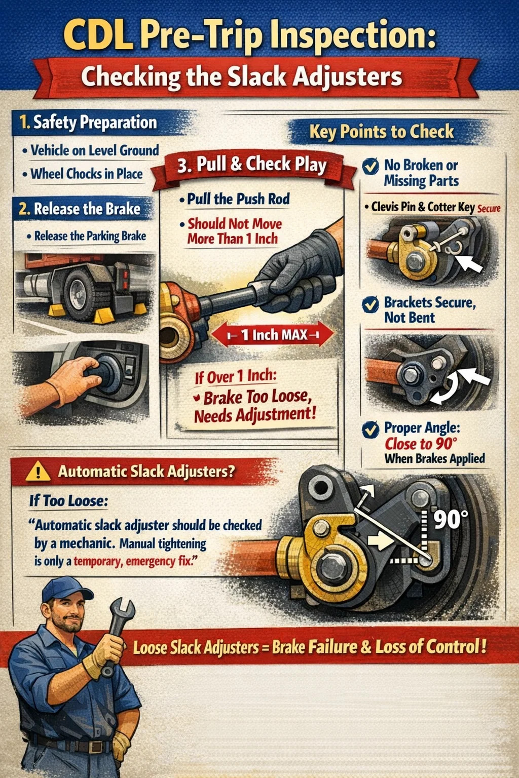 Dalam proses mendapatkan Lesen Pemandu Komersial (CDL), pemeriksaan pra-perjalanan adalah bahagian yang penting, dan pemeriksaan penyelaras kendur adalah salah satu perkara yang paling difokuskan oleh pemeriksa.